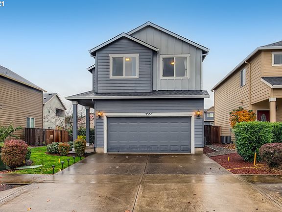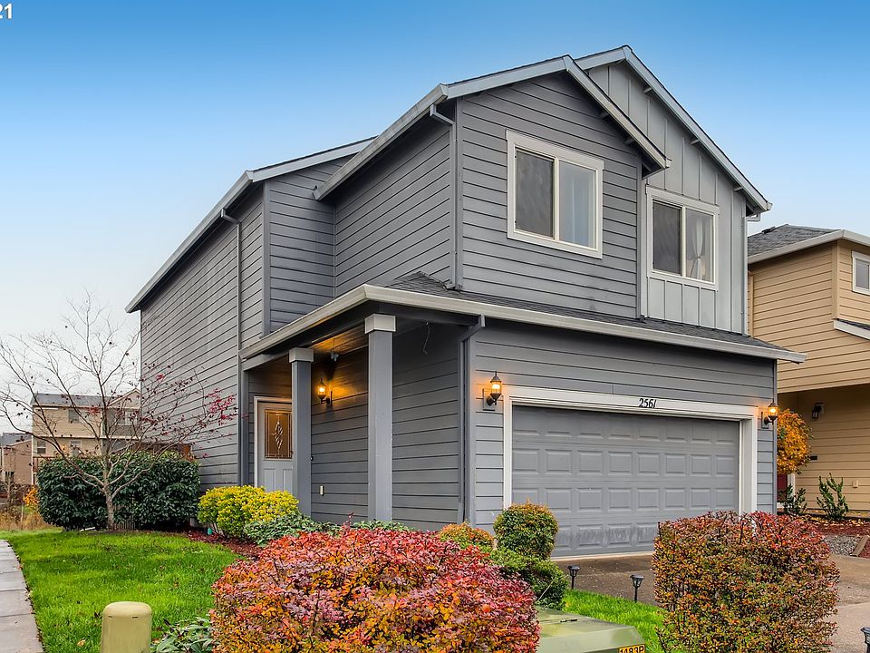 Fantastic Craftsman four bedroom home in Forest Grove! Generous foyer, high ceilings, fireplace in the living room and eating bar and pantry in the kitchen. The dining room opens to the low maintence backyard that backs to a green space. The vaulted and spacious primary bedroom has a walk-in closet and private bathroom. New laminate flooring upstairs and carpeted stairs in 2019. Updated ceiling fans in the living room and primary bedroom. New cement patio in 2020.