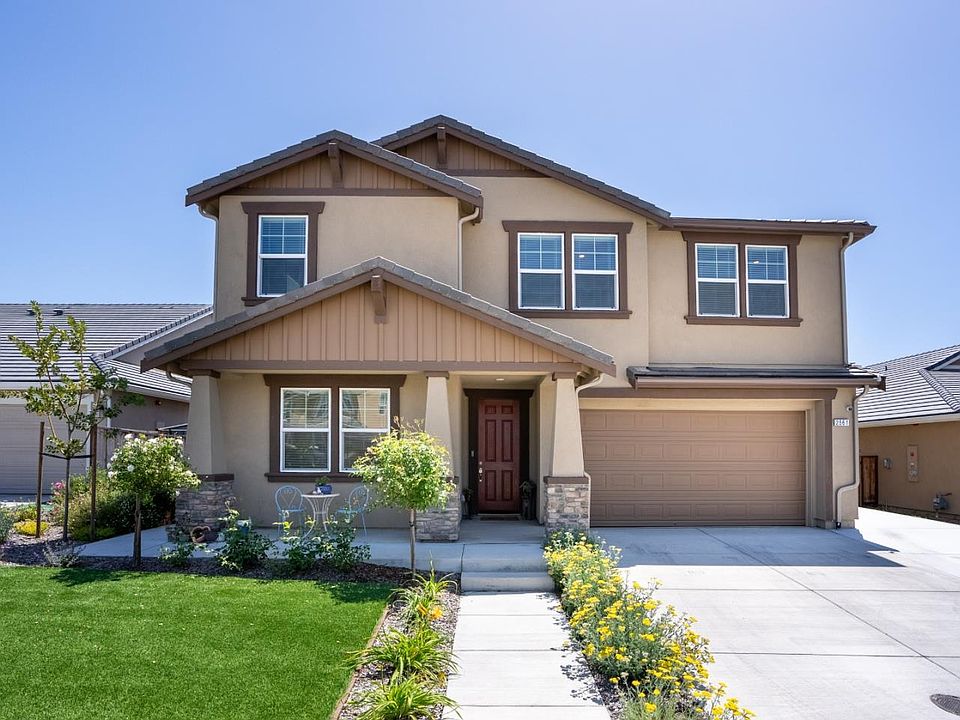 This incredible home is BETTER THAN NEW! It has nearly $100,000 in builder upgrades, plus thousands more in Custom Seller Improvements. This home is ideal for a large or extended family, with one bedroom and a full bathroom downstairs. The upstairs offers a Primary Bedroom Suite, 3 additional bedrooms, a large family room or media room, plus the laundry room. Features include: 9 ft High Ceilings, LED lighting, 8 ft High Interior Doors, Spacious Living Room with Electric Fireplace, Remote Controlled Window Blinds in LR, Luxury Vinyl Plank Flooring, Kitchen with Stainless Steel Appliances, Marble Countertops, Farmhouse Style Apron Sink, Island with Custom-made Butcher Block, Maple Cabinets and a 5 Burner Gas Range. The Professionally Landscaped Backyard features a Large Patio covered by a Beautiful Pergola, a Gas Firepit, Premium Synthetic Lawn, a Charming Wood Swing, separately fenced Dog Run, and has gas plumbed and ready for an outside Kitchen/BBQ. The property is Green Rated and has Owned Solar, a Tankless Water Heater and is wired for a Level 2 Electric Vehicle Charger. Built on a Premium Lot with single level homes on each side, this property is a must see! This is the one you've been waiting for!