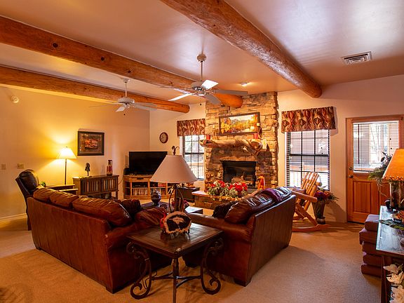 Looking for an easy care getaway? This is an outstandling lower level condo at The Village - Pinetop. Being sold furnished, this condo features three bedrooms and two bathrooms with an open floor plan. Eat in kitchen, which is very large. Living room with incredible stone gas fireplace and wood mantle. Newer carpet in living room, master bedroom, and bathroom. Total cabin in the woods feel. Enjoy the tall pines and mountain air from your back patio. HOA is $550 per quarter and maintains all exterior/landscape maintenance and pays for water, sewer and trash... One carport parking space plus a storage shed!