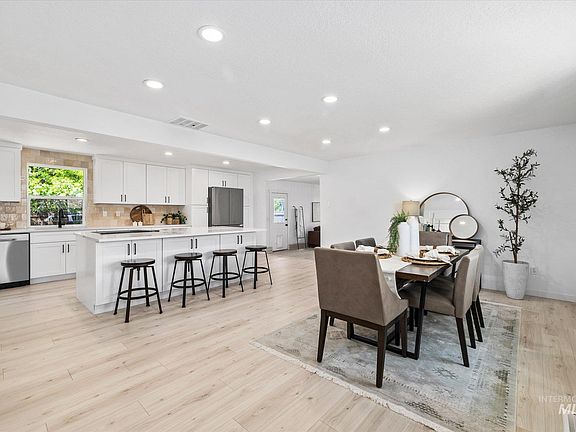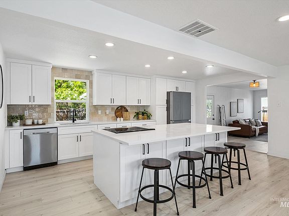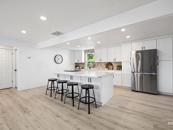 DREAM KITCHEN!!! Great Meridian location featuring an updated single level home with a 2 car garage and spacious backyard. All new interior paint, new exterior paint, new bath/light fixtures. Open living concept provides 2 living rooms and leads to a HUGE kitchen that features brand new white shaker soft close cabinets, white quartz, full tile backsplash, upgraded brand new electric range/dishwasher, stainless refrigerator, which are all included. Large island provides additional entertainment space and seating. Backyard leads to a covered patio, full fencing, fire pit and storage shed. Come see this home today!