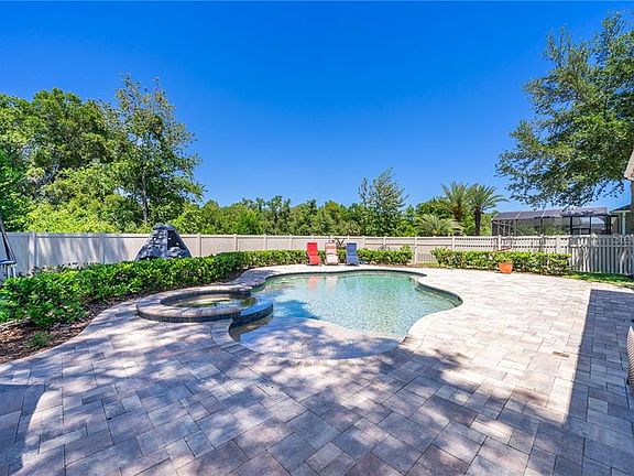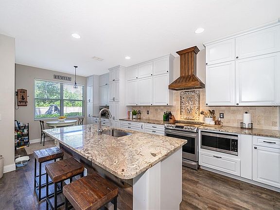 Prepare to be impressed with this exceptional 4/2 pool home in the gated community of Wekiva Run. You'll love the luxurious extras you will find throughout this home. The updated gourmet kitchen boasts beautiful floor to ceiling Kraftmaid cabinets with pull outs, granite counter tops, tile back splash with mosaic, granite island, coffee bar, newer stainless steel appliances and eat in area. The kitchen overlooks the spacious family room with triple sliders out to the stunning pool area. The fully fenced back yard oasis includes a covered paver patio, paver pool deck, spa and sparkling pool with baja shelf entrance. At the entrance of the home there is an expansive living/dining room area which is a wonderful space for entertaining. The master suite with double door entry offers two walk in closets, tray ceiling, linen closet, his and hers vanities, a garden tub and separate shower. Bedrooms 2, 3 and 4 are all ample sized with ceiling fans and spacious closets. Enjoy the additional elegant upgrades that include stunning waterproof Mohawk luxury plank flooring that runs throughout the home, Nest thermostat, volume ceilings, 6 inch baseboards, tankless water heater, Energy Star Certified with Low E Double Pane Glass windows, Ring doorbell and flood lights and 1 year old A/C compressor. Front elevation also includes brick paver driveway and oversized 3 car side entry garage. Wekiva Run is close to the Field of Fame Northwest Recreation Complex and Highway 429 with easy access to anywhere in Central Florida. This home is move in ready and a must see!