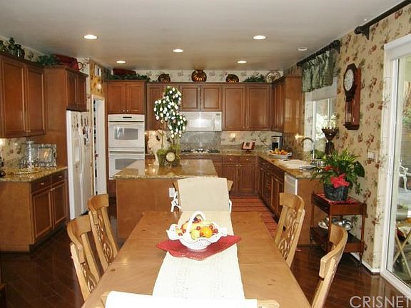 WOW! This former model is one of the most beautiful home located in Stevenson Ranch. This gorgeous home located on a flat, small Cul De Sac features 5 bedrooms, 4.5 baths and a 3 car garage. The main floor has hard wood floors through out. Large living room and dining room with custom window coverings. The kitchen features beautiful granite counter tops and island with built in double ovens and microwave. The family room has a vaulted ceiling and a fireplace. There is a bedroom down stairs with a private bath and also an half bath. The upstairs features 4 bedrooms including a master suite with sitting area, separate shower, jacuzzi tub with 2 walk in closets. Upstairs laundry room with storage and a sink. The private park like back yard has a large covered patio with fans, wrap around grass area. Close to award winning school and shopping. Don't miss this sparkling home. Call tim Reed to see 6614780095