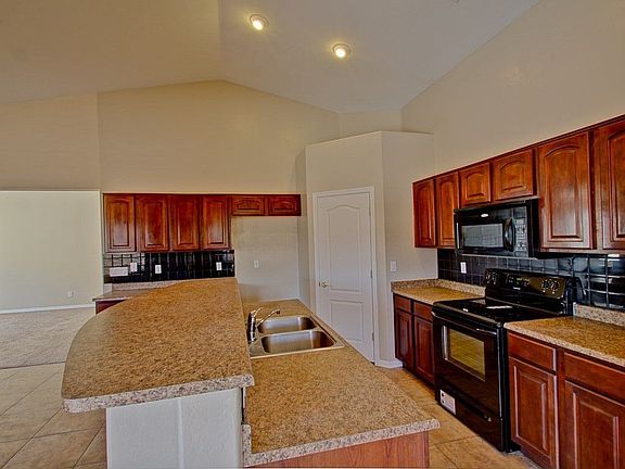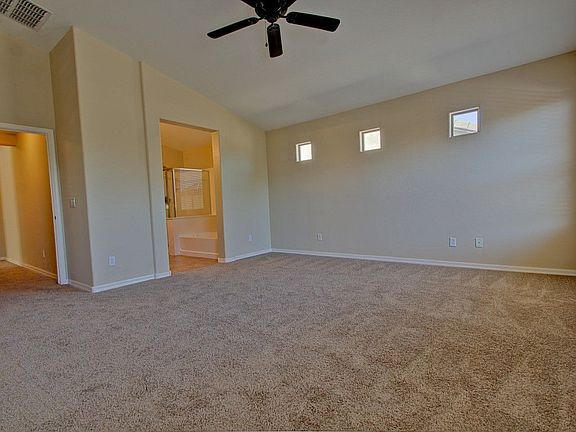 Charming single story home in Buckeye now available to one lucky buyer! Enter into tiled walkway with a windowed wall looking to the carpeted family room with vaulted ceilings. Continue on to living room and breakfast nook overlooking the backyard. Kitchen boasts updated appliances, tile backsplash, and an island! Large master bedroom has tall vaulted ceiling. Master bath comes with spacious walk in closet with built in shelves, separated shower and tub, and dual sinks! Large backyard offers low maintenance landscaping and a covered patio! This one is priced to move fast, make your offer today!