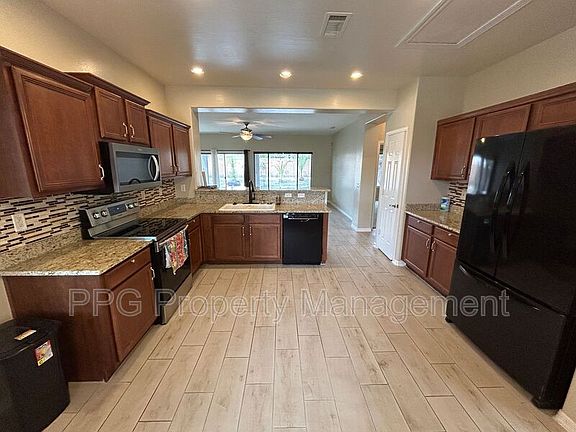 Welcome to your perfect desert oasis. This beautifully maintained home offers a seamless blend of comfort and style, featuring wood-look ceramic tile flooring that runs throughout the main living areas. The open great room concept creates a spacious and airy atmosphere, ideal for both everyday living and entertaining. The kitchen is a true standout, boasting stunning granite slab countertops complemented by a stylish tile backsplash. Stainless steel appliances and upgraded cabinetry complete the modern, functional space designed for culinary inspiration. Retreat to the primary suite, where you'll find a generously sized walk-in closet and a luxurious bathroom with a walk-in shower. Thoughtful touches continue throughout the home, including 2" wood blinds, a large laundry room with ample storage, and an extended covered patio perfect for outdoor gatherings or relaxing in the shade. Positioned on a desirable north/south exposure lot, the home also features a high-efficiency upgraded Trane air conditioning system, water softener and a spacious two-car garage. This property combines upgraded finishes with practical amenities, making it an exceptional place to call home. 12 month minimum lease. Pets ok with approval and an additional deposit, no cats. The security deposit is equal to one months rent. The application fee is $55 per adult. INITIAL MOVE-IN COSTS: - Security Deposit - Minimum of 1X monthly rent but not greater than 1.5X monthly rent - $400 cleaning fee - First Month's Rent + $50/$65 Resident Services Package Setup Fee - Pets - If applicable, a non-refundable Pet Fee in the amount of $350 per pet is required RECURRING MONTHLY COSTS: - Monthly Rent - $50/$65 Resident Services Package (includes renters' insurance, credit reporting, rewards program, pest control, air filter delivery, and more.) TO SCHEDULE A DAY AND TIME TO VIEW THIS PROPERTY, PLEASE GO TO PPGPROPERTYMANAGEMENT.COM ADDITIONAL DISCLOSURES: PPG Property Management LLC is an Arizona Limited Liability Company PPG Property Management does business in accordance with the Fair Housing Act. PPG Property Management does not discriminate against anyone based on race, color, religion, sex, handicap, familial status, or national origin. PPG Property Management is not responsible for any error or omission in the wording or content of this information. The information contained in this ad is accurate to the best of our knowledge. PPG Property Management 15411 W Waddell Rd, Suite 106, Surprise, Arizona, 85379