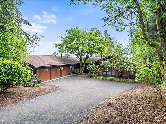 Spectacular property. Rare opportunity. Tucked away in a quiet enclave of homes is this 1.47 acre gem. A private driveway flanked by tall firs leads you into a gorgeous setting of Northwest greenery and seclusion. With 2,160 sq ft of gracious living on one level, it boasts vaulted cedar ceilings, an ideal design, and walls of windows with ever-changing views of nature and eastern skies. An 890 sq ft garage is perfect for hobbies and collections. Relax on the back patio with picturesque scenery all around. Nearby, Lake Fenwick offers trails, fishing, play areas, and a boat launch. Owned by the same family since it was custom built, it is available for the first time in 56 years. A truly exceptional place. A must see. Come make it yours!