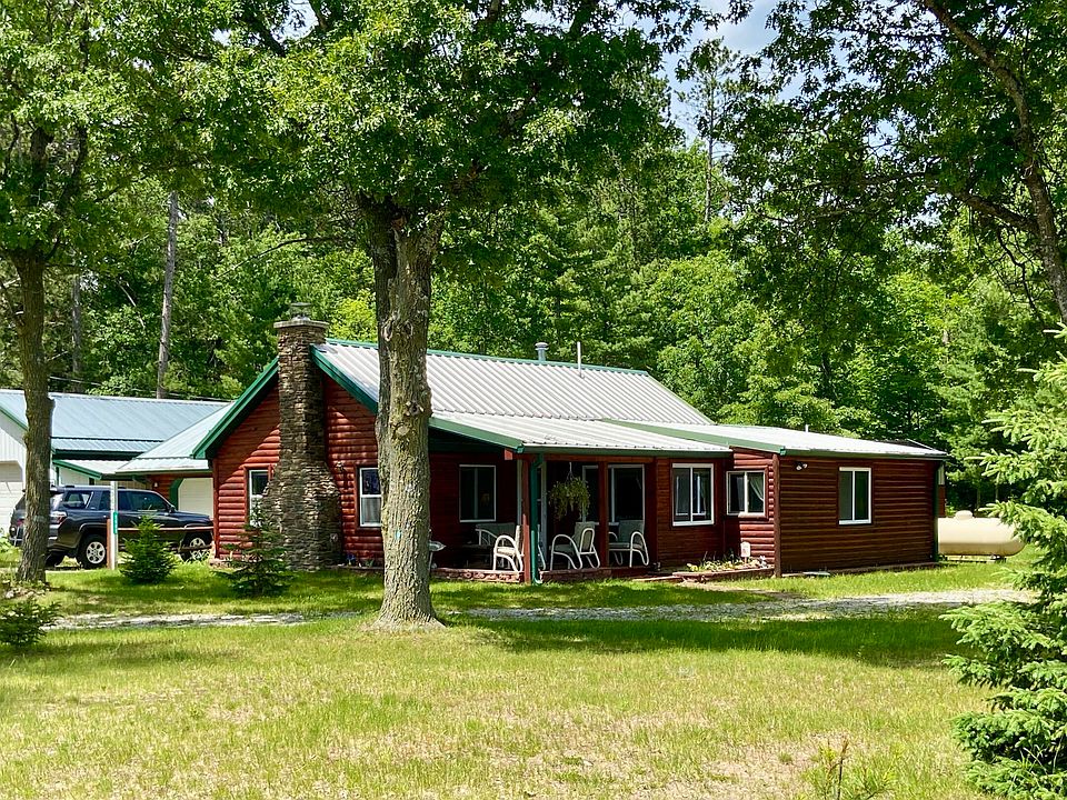 This Northern Michigan Beauty has it all!! Completely remodeled in 2020, inside and out. Metal roof, siding, insulation, furnace, hot water heater, hardwood hickory floors, windows, well, drain field, breaker box. The stone fireplace is stunning. Primary bedroom with on-suite full bath and walk-in cedar closet. Park-like setting for a yard and groomed trails on this over 3.5-acre property that backs up to 152K Acres of Huron Nat Forest. Just over 2 miles to the beautiful AuSable River. Attached heated garage and the Pole barn are built for the person who loves to have an extraordinary workshop complete with a full office. There is a full air system, fully heated, has a half bath, and tons of storage. RV parking-elect/water hookup. Call today this one won't last!!