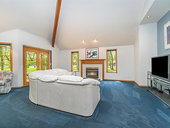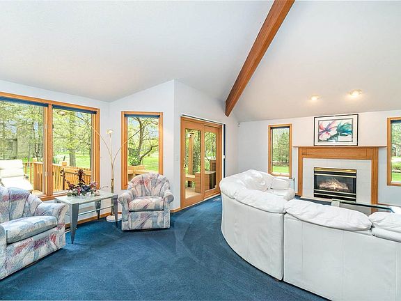 Rare find in Larkin Township near City Forest. This custom contemporary home sits on a large 1+ acre lot that is bountiful with color and diversity. Within its 4300 square feet of finished space there is a main floor primary suite, plus an additional 3 bedrooms and 2.5 baths. The large kitchen is centered around the long island with ample seating and new countertops. Upstairs you will find a unique living space with skylights providing natural light. Find more entertaining space in the finished basement equipped with a large bar, gaming area, wood fireplace, and 3 large egress windows. With over 1700 sq ft of garage space you will have enough room for your tools, toys, or classic cars.