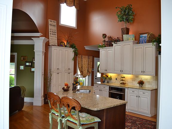 What a glorious view! This beautiful custom built home sits on 10 lush acres just minutes from town! The very livable floor plan features quality materials & craftsmanship throughout.The home features gleaming hardwood floors, vaulted and two story ceilings and lots of windows and natural light. There is a 2-story Entry & Great Room, a formal Living Room & Dining Room, and inviting Family Room with fireplace. The gourmet Kitchen has granite counter tops, stainless appliances and beautiful cream cabinetry! There is a lavish first floor Master Bedroom with a spacious marble tiled Master Bath & great walk in closet. The finished walk out Basement features a great Family Room with wet bar, Bedroom with full bath, a large Home Theater with equipment, and an amazing brick lined wine cellar. The Geothermal HVAC, 3 car attached garage and circular drive complete this wonderful home. The beautifully landscaped 10 acres have a fire pit area, wooded area, great garden spot and large deck.