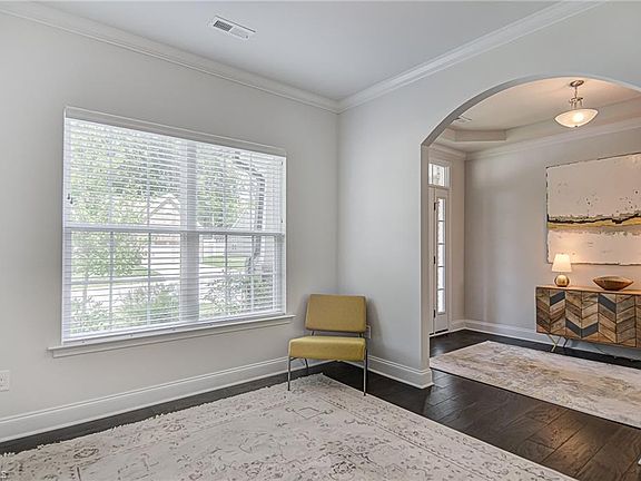This beautiful open floor plan has many great features; high ceilings, hardwoods on the main level, archways, and gorgeous coffered & trey ceilings just to mention a few. The kitchen is open & spacious with granite countertops, tile backsplash, & island with pendant lighting. It opens into the great room making it a perfect space for entertaining. When those chilly nights soon come, you will enjoy staying cozy by the gas log stone fireplace. The flex space is located at the front of the home. Perfect for a dining space or office for working at home. Very large primary suite w/trey a ceiling & lovely en-suite that features double sinks & beautiful tile shower make this the perfect at-home oasis. There are also three spacious secondary bedrooms & a full bath. The roomy loft makes this house complete. This loft has a walk-in closet that is perfect for additional storage. Enjoy the outdoors with a fenced-in backyard & patio perfect for relaxing. Meticulously maintained!
