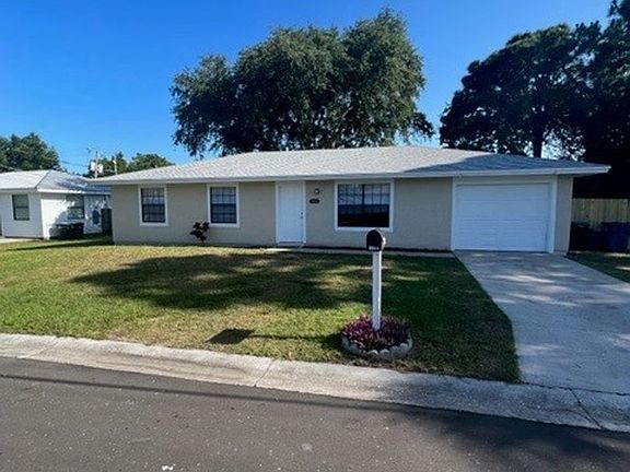 Spacious single-story 3BD/2BA living/dining combo home. Freshly painted and tile floor throughout, window treatments, central heating/cooling, and ceiling fans in living room and kitchen. Cozy galley style kitchen fitted with tile countertops, new electric range and new refrigerator. Bathrooms are upgraded; Master has own new vanity and new tub/shower. Deck opened to a fully fenced yard and plenty of shade from the beautiful oak and pine trees. Second refrigerator in garage, one-car garage and ample driveway. Pet friendly; dogs and cats allowed, but no restricted breeds. Household pets, Service Animals (SA), and Emotional Support Animals (ESA) are subject to a pet screening though Petscreening.com. Renter's insurance required. NO HOA Directions: Head South on US-1 S/N Harbor City Blvd, turn right onto Robert J. Conlan Blvd. NE, destination is on the right.