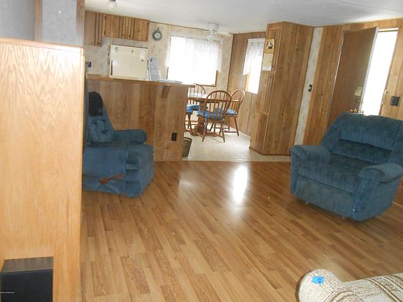 Perfect starter or retirement singlewide home on an acre. Room to park RV in back yard, or have animals or have a garden. Lots of possibilities! Recently painted on exterior. Fully fenced 1.06 acre lot. Some mature trees. Enjoy sitting on front deck and taking in all the views! Great views of sunrises and sunsets! Kitchen-Dining Room and Living Room all open & spacious. Leave Living Rm & Guest bedroom just down hall. Laundry area in hallway & full bathroom just before the Master bedroom at the south end of home. 1-car detached garage & hobby-workshop are under same roof. Small shelter for bike or quad or lawn mower! Well house in back yard. Home is on Well Septic. Make this your next purchase! Could also be a great investment property!