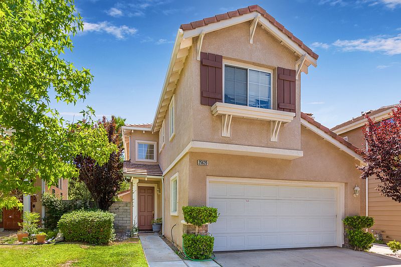 Welcome home to this highly desirable Stevenson Ranch 3 bedroom house! This exquisite home offers a fantastic cul-de-sac location and a private backyard with a wonderful view. Inside, the property boasts a separate living and dining areas, with a nice family room with a cozy fireplace. There is a huge primary suite with an attached office/nursery and bathroom. There are two other bedrooms upstairs as well, long with a bathroom in the hallway with dual sinks. Don't miss out on the opportunity to make this stunning property your next home sweet home!