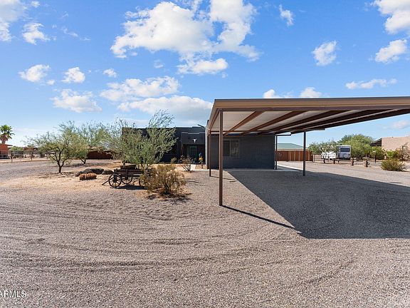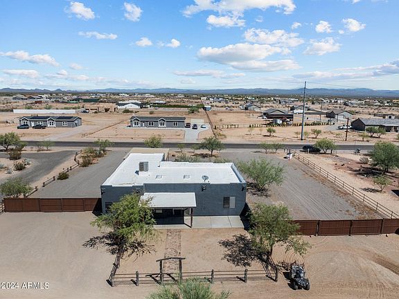 Welcome to 25621 W Patton Rd, a stunning property nestled in the serene landscape of Wittmann, AZ. This charming home offers a perfect blend of comfort and style, ideal for those seeking a peaceful retreat while remaining conveniently close to urban amenities. Featuring 3 bedrooms and 2 bathrooms, the spacious layout provides ample room for family and guests. The bright and airy kitchen is equipped with stainless steel appliances, granite countertops and opens into a cozy living area, perfect for entertaining. Step outside to discover a vast backyard complete with a covered patio, ideal for relaxing evenings under the stars or hosting weekend barbecues. Surrounded by stunning desert landscapes, you'll enjoy breathtaking sunsets and the tranquility of country living, all while being just minutes from downtown Surprise, 1.8 miles to 4D Arena, 20 minutes to Dunns, 25 minutes to Wickenburg, 10 minutes to Horns and Hooves in Morristown, 30-40 minutes to Buckeye. This property is more than just a house; it's a lifestyle. Whether you're looking to unwind in your private oasis or host friends and family, this home has everything you need and more. Don't miss your chance to own this desert gem and experience the charm of Wittmann living firsthand with a turnkey property ready for you! A beautiful horse property in the heart of the roping capital of the world. Great place for winter visitors, boarding, ropers and barrel racers. This property is location makes it a possible income potential. This 1.27 acre property features a riding area for barrel pattern, 4 15X15 stalls in mare motel, 3 rv hookups Covered back patio with plenty of room to add more stalls!