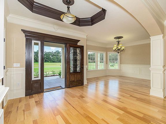 Breathtaking new home on a premium lot in Cinnamon Hills Estates with features galore! Home includes 9-10 foot ceilings with incredible detail work throughout including crown moulding, coffered ceilings, raised ceilings, chair-rail moulding, custom built-in storage, etc. Kitchen has designer cabinets, top shelf appliance package, and marble look quartz countertops. Living room has a 12 foot disappearing glass wall that opens up to a nearly 500 square foot lanai with TRAVERTINE FLOORS. All bathrooms feature travertine flooring and detailed tile work, and all bedrooms are oversized with walk in closets. Too many features to list, call for more info today! (Home will be completed and ready for move in by September 1).