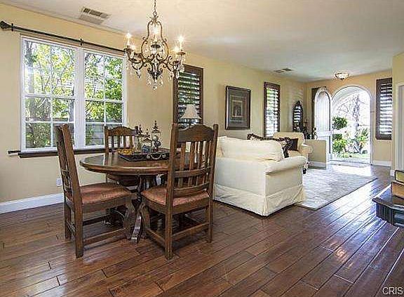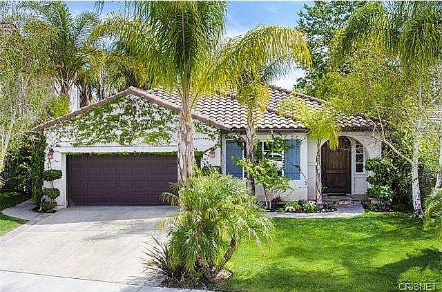 WELCOME TO THIS RARE SINGLE STORY CENTEX RIDGE HOME LOCATED IN THE EXCLUSIVE STEVENSON RANCH COMMUNITY. THIS 3 BEDROOM (OPTIONAL 4TH BED/OFFICE) 2 BATHROOM HOME IS LOCATED ON A CULD-E-SAC POSITIONED ON THE VIEW SIDE OF THE STREET. INSIDE THIS BEAUTIFULLY APPOINTED HOME YOU WILL FIND OPEN LIVING SPACES INCLUDING A FORMAL LIVING AND DINING ROOM. PRESENT ARE DOUBLE DOORS LEADING TO A OPTIONAL 4TH BEDROOM/DEN/OR OFFICE. STEPPING INTO THE LARGE EAT IN KITCHEN WITH ISLAND AND BREAKFAST BAR YOU WILL NOTICE THE ABUNDANCE OF CUSTOM PAINTED CABINETS AND COUNTER SPACE. MOVING INTO THE LIVING ROOM YOU WILL FIND A CUSTOM BUILT IN ENTERTAINMENT CENTER WITH FIREPLACE AND CUSTOM SHELVING. THIS HOME FEATURES REAL HARDWOOD AND TRAVERTINE FLOORS, PLANTATION SHUTTERS, CROWN MOULDING, 6 BASEBOARDS, SPEAKERS THROUGHOUT AND MUCH MORE! THE BACKYARD OASIS HAS A TROPICAL FEEL WITH AN INGROUND SPA ADORNED WITH ROCK WATERFALL, BUILT IN BBQ ISLAND WITH FRIDGE, CUSTOM COLORED STAMPED CONCRETE AND MOUNTAIN VIEWS THRU ALL THE PALM TREES! THIS HOUSE IS ONE OF A KIND!