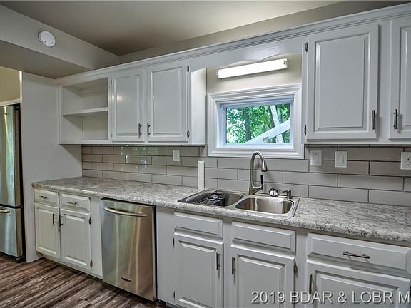 Completely updated cabin on the Gravois Arm of Lake of the Ozarks. New roof, siding, hot water heater, HVAC, windows, flooring, counters, appliances etc. It has all been done, just come enjoy your vacation place away from home! 120 feet of gorgeous lake frontage, a really cool martini deck, and a nice concrete dock all on a great part of the lake with deep water and spectacular views. The boat dock has two large slips as well as a pwc slip. Plenty of parking with room for all of your friends and family. Really fun floor plan with a living room on the main level as well as an upper level family room and even a fun loft! Good quality remodel this past year and home really shows well. This is a great part of the Gravois Arm. Perfect spot to fish, swim and enjoy the lake!
