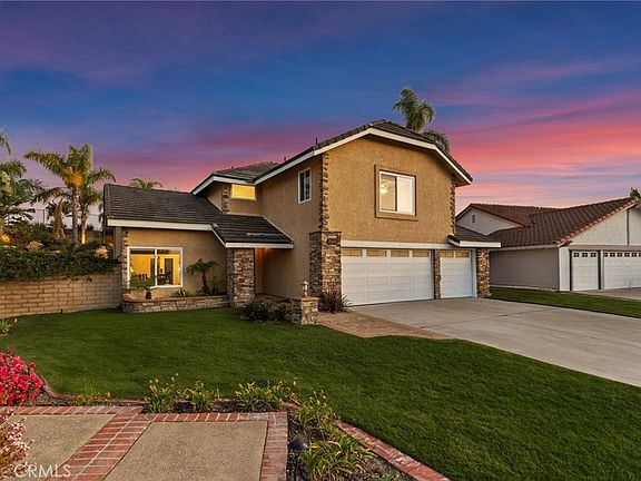 Breathtaking tropical paradise nestled in a private cul-de-sac on a nearly 12,000 square foot lot! Backing to a serene slope with no neighbors behind, this home boasts an incredible $500,000 backyard that offers luxury, privacy, and endless relaxation. The sparkling saltwater pool takes center stage, complete with cascading waterfalls, a jumping rock, beach entry, and a 19-foot hillside water slide. Unwind in the oversized spa or enjoy the two-sided papala-covered bar with seating for 8; with a fridge, sink, ice box and BBQ grill. Cozy up in front of the stone fireplace, or gather around the stone/gas fire pit to make lasting memories. For panoramic views of the San Juan Hills and Mission, head up the private hillside to the secluded deck—ideal for watching sunrises or fireworks on the 4th of July. The stunning backyard is complemented by flagstone hardscaping, tropical vegetation, a patio cover, and the latest addition of a new pool/spa heater. Inside, the home boasts new flooring in the dining and living rooms, ceilings adorned with faux wood beams, and French doors opening directly to the dream yard. The expanded kitchen features a chopping block island, granite countertops, stainless steel appliances, newer cabinetry, recessed lighting, and a walk-in pantry. The spacious family room, with recessed lighting and a flagstone hearth, also opens to the backyard paradise. The master suite offers a walk-in closet with custom organizers, and a bath with a marble-top dual vanity and a natural slate walk-in shower. Recent improvements include fresh interior paint, new carpet, PEX repipe and a recirculating instant hot water system. Dual-pane vinyl windows throughout. The 3-car garage provides built-in storage cabinets, attic space, and ample room for all your needs. The expansive lot leaves plenty of space for potential additions or customization. Conveniently located near shopping, Mission Viejo Mall, and just a short drive to the cool ocean breezes of Dana Point Harbor, this rare gem offers the perfect balance of luxury, comfort, and tranquility.