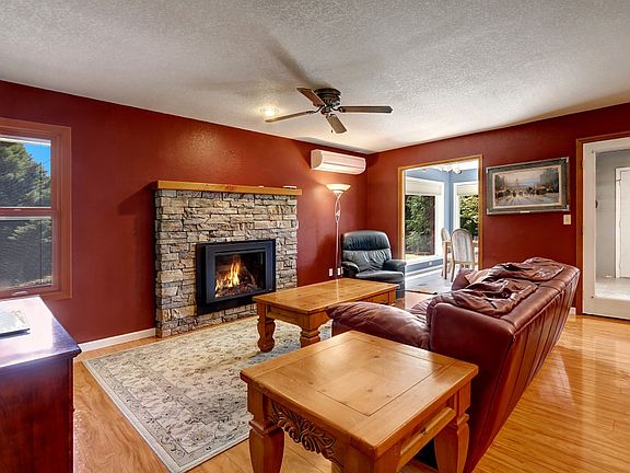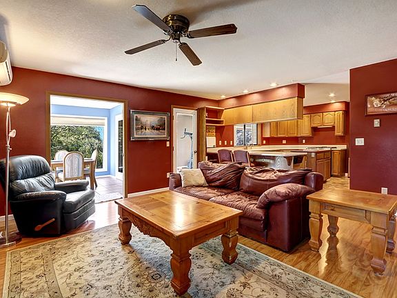 Equestrian Enchanter! Begins w/Fully-Fenced 5.03 LEVEL Acres ready for your Horses! Boasts 2 Stall Barn, Loafing Shed, Riding Arena & a Detached 2 Car Shop for more storage! Formal Entry opens to Living Room & leads to Dining Room,Nicely Updated Kitchen w/Corian Countertops, Chef's Style Gas Range/Oven, tons of cabinets & Eating Bar that opens to Family Room warmed by Gas Insert & Cooled by Ductless Air-Conditioning! Plus French Doors lead to Bonus Room & Coffee Nook to enjoy beautiful outdoors!