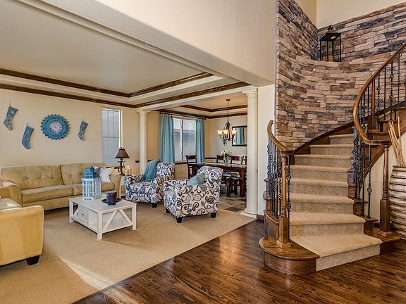 'MUST SELL' opportunity! Shop/dine at Southlands Mall. Bluff, farmland, mountain views, gas fire pit. Sophisticated home w/uncompromising elegance & style! Over $91,000 invested after builder upgrades! Hand-scraped wide-plank Acacia floors, coffered ceilings, crown molding, decorative pillars, plantation shutters, slate floors. Gourmet kitchen w/knotty alder cabs, granite, travertine, stainless, double ovens+gas cooktop. Soaring ceilings w/exposed stain grade beams+floor to ceiling stacked stone wall anchored w/a gas fireplace. Onyx vessel sink dresses up powder room. Circular staircase w/stacked stone+wrought iron. Multi-purpose loft & 4 beds up. Master 14x13 closet, spa-like bath, Euro frameless shower, tumbled travertine, granite. Pro finished bsmt=media/rec & wine grotto. Barn door leads to large bdrm. Sauna bsmt bath. Whole home audio, dual main level staircases, dual zone heat & air. Seller credit $7,500 toward closing costs w/acceptable offer to Seller under contract by 7-7-19.
