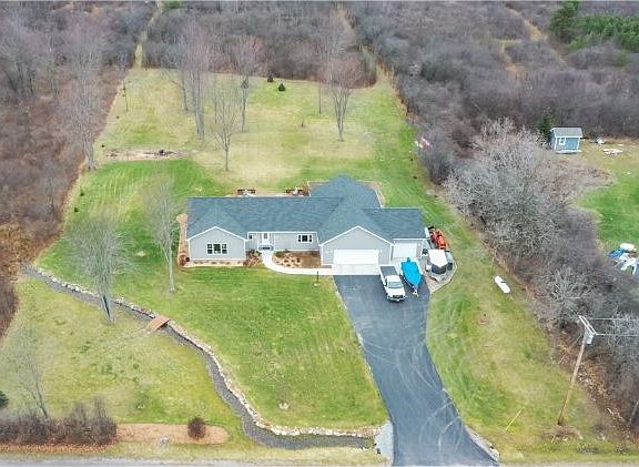 Looking for a quality home? Look no further! This beautiful ranch home built in 2016 has much to offer. In floor radiant heat will keep your toes warm and home heated during those cold winter months! With four bedrooms, each having their own walk-in closet, there is plenty of room for storage. Three full spacious bathrooms throughout the home. A large kitchen with a walk in pantry will have you cooking up a storm with plenty of storage! Electric oven is also plumbed for gas for your preference! Don't worry about a cold garage during winter months as in floor radiant heat goes into both the 2-stall oversized garage and 1-stall attached. Plenty of storage opportunity with both garages. Enjoy a nice spring, summer, trail walk down to the creek through one of the multiple paths in the back acreage. The low maintenance trails make for a quiet evening stroll or a wonderful morning walk out to the pond to sip your coffee. During the winter months enjoy snowshoeing and cross country skiing through the trails to your favorite nature watching spot. Enjoy a fire by the creek bed and take in the view. This home has so much to offer! Set up a time to experience it for yourself!