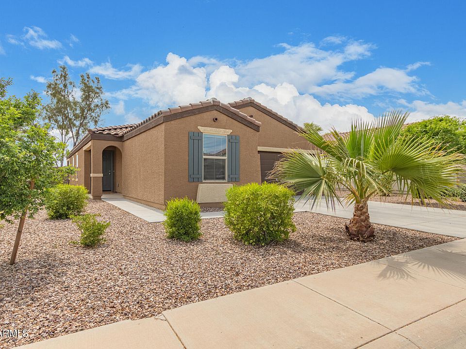 Paid off SOLAR! This charming 4-bed, 2-bath residence in Encantada Estates is the one you're looking for! You'll be delighted by the appealing open layout showcasing tile flooring, bountiful natural light, backyard access, & soothing palette. The impeccable kitchen offers granite counters, paneled cabinets, a pantry, recessed lighting, sparkling SS appliances, & an island w/ a breakfast bar. The bright main bedroom provides soft carpet, a walk-in closet, & a private bathroom w/ dual sinks & a separate tub. Have a fantastic time hosting memorable gatherings in the backyard featuring a covered patio, artificial turf, & beautiful mountain views!