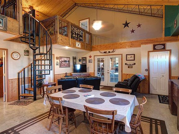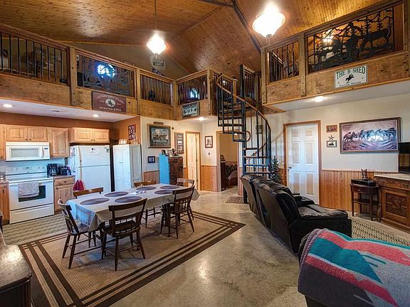 Country Western Inspired 2 Bed 1 Bath All Electric Home attached to HUGE 50x40x24 Workshop. This Truly Unique "Shouse" rests on 11+/- Beautiful Acres in an Unbelievable Private Setting just off well maintained road. Home provides 1200 Sqft of Stunning Wide Open Living Space, including 780 Sqft of Open Loft Area with Amazing View of not only Main Floor Area, but Overhead View of HUGE Shop as well. Eat-in Kitchen Area Features Gorgeous Raised Panel Cabinets w/ Lots of Storage, as well as Plenty of Cooking Space. Family Room in Loft Area can be used as 3rd Bedroom. Pool Table & Oak Desk to remain. Shop has Concrete Floor, Two 9x14 Doors, and is Plumbed for Bathroom. Fencing included. Call to schedule your showing today!