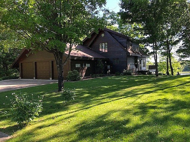 You'll love the breath taking views of Red Cedar Lake and the Blue Hills in the distance. Sitting on a higher elevation gives you the beautiful views while taking the leisure tram to your dock takes the leg work out of taking the steps. The best of both Worlds. Enjoy this beautiful Chalet style home with a full wall of large windows facing East overlooking the Lake. An open floor concept with great floor plan. Beautiful things come in Threes: 3 bedroom, 3 full bath, 3 floor to ceiling Stone or Brick Fireplaces and 3 car garage. Alluring gardens and newly landscaped patio with a large fire pit and cement steps to the lake. You can either take the steps or save your energy and take the leisure tram to your dock. Situated on the popular Red Cedar Lake Chain of Lakes. Red Cedar Lake is the largest lake in the chain at 1,841 acres, followed by Hemlock Lake at 357 acres and Balsam Lake at 295 acres. The Red Cedar Chain of Lakes has a diverse fishery consisting of Walleye, Bass, Pike and all Pan Fish. Close proximity to Rice Lake and a 2 hour drive from the Twin Cities. Whether you are interested in fishing, swimming, boating, canoeing, golfing, water-skiing, snowmobiling, 4-wheeling or you simply want to enjoy a cup of coffee or your favorite cocktail while watching and listening to the resident loons and trumpeter swans. You and your family will be able to relax and enjoy the recreation all this has to offer!