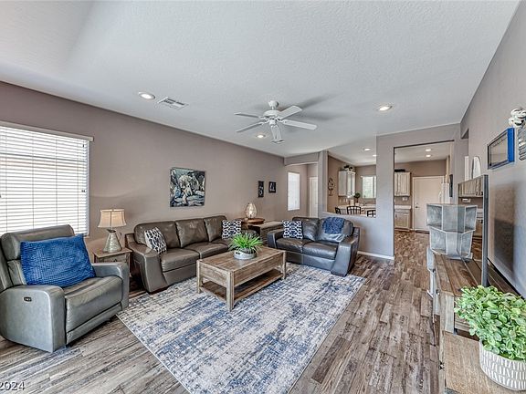 Solera Sunset Retreat! Welcome to a charming 2-bedroom, 2-bathroom home located in the desirable Solera 55+ Community in Henderson, NV. This beautifully maintained residence offers a spacious open floor plan, modern kitchen, cozy living area, and a serene backyard with mountain views perfect for relaxation. With access to community amenities including a clubhouse, fitness center, and pool, this home provides a vibrant and fulfilling lifestyle for its residents. The property has a fully fenced backyard. HVAC system was replaced in 2023. Epoxy Garage Floor. Refinished cabinets and laminate floors with carpeting in the bedrooms. Exterior of property was painted in 2021.