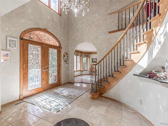 Welcome to this remarkable custom built home that is perfectly perched on the park-like setting at the end of a quiet cul-de-sac, backing to the world class golf course that winds it way through The Ranch Country Club of Westminster, Colorado. Here you will find a delicately planned community with exquisitely crafted homes and peaceful seclusion. As you approach this home you will notice the extensive professional landscape, mature trees, and elegant lighting that leads you up to the dramatic entry. Once inside, you will notice the dramatic two story entry with gorgeous tile accents and a graceful spiral staircase. This true gourmet kitchen is a Chef's dream. This area offers generous slab granite counters, custom cabinets, high-end stainless steel appliances with a wine refrigerator, gas fireplace, breakfast bar, walk-in pantry, eat-in dining, and access to outdoor living area. The perfectly situated family room boasts soaring ceilings and is flooded with natural light from the large windows that perfectly frame the outdoor living area and golf course views. This room is complete with an English-style pub and brick faced fireplace. The main floor is complete with a formal dining room, private study and guest bathroom. The second level features a luxurious master suite with a relaxful en suite and walk-in closets. There are three additional bedrooms including a guest suite and Jack & Jill bathroom. The walk-out basement area is an entertainer's dream with a rec/pool table area, full cinema-style theater room, workout area and full guest suite including a bathroom with a steam shower...a must see! The outdoor living area is second to none. Just imaging summer entertaining from the extended deck where you can enjoy the outdoor kitchen area, gazebo firepit, and listen to the running water from the mountain like stream while enjoying views of the perfectly maintained lush landscape, private yard, and golf course. Hurry to see! 2 water features, pond & fire pit.