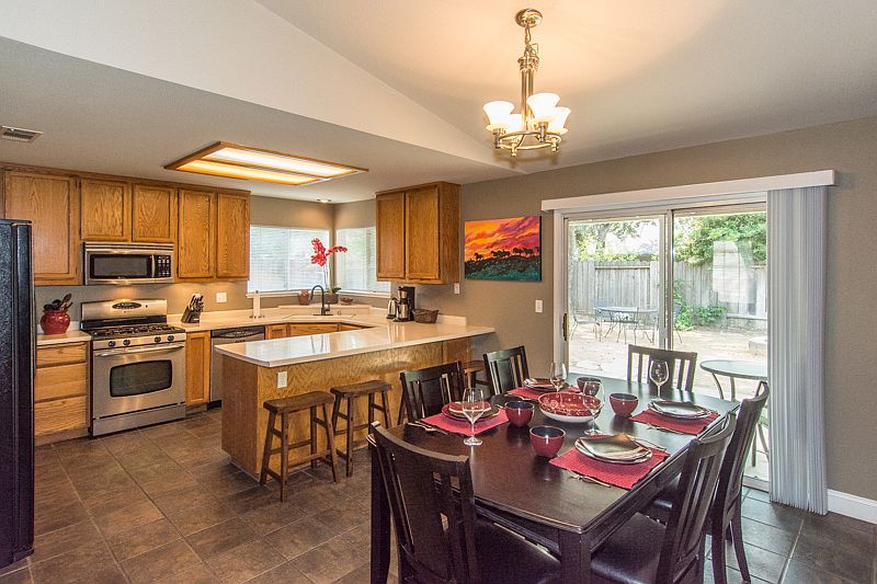 Walk into style with this turn-key home; an entertainer's delight! Near Lema Ranch. 4th bedroom could also be set up as a den or family room with double doors. Hardwood & tile floors throughout; bedrooms/living area carpeted. Roomy dining area leads to custom landscaped back yard with covered patio and fire pit. Interior laundry room, New HVAC. See list of furnishings for sale separately.