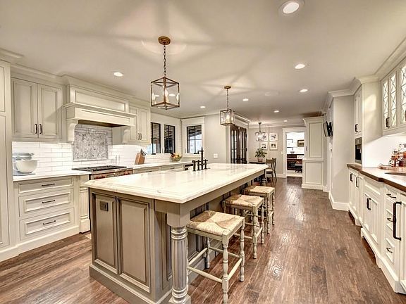 - Kitchen Features: Breakfast Bar, Eat-in Kitchen, Pantry, View to Family Room, Stone Counters, Kitchen Island, Breakfast Room, Cabinets White, Wine Rack
