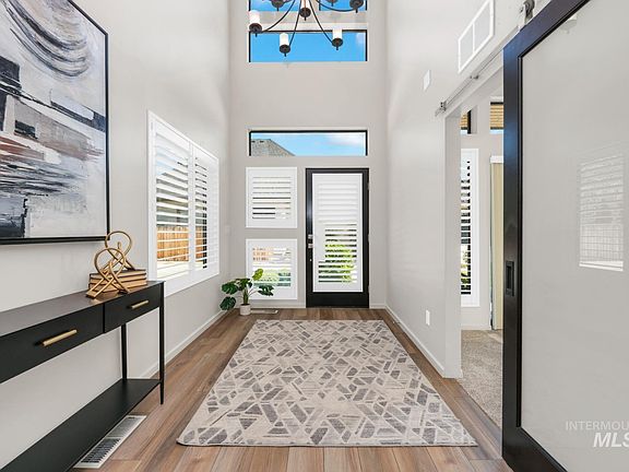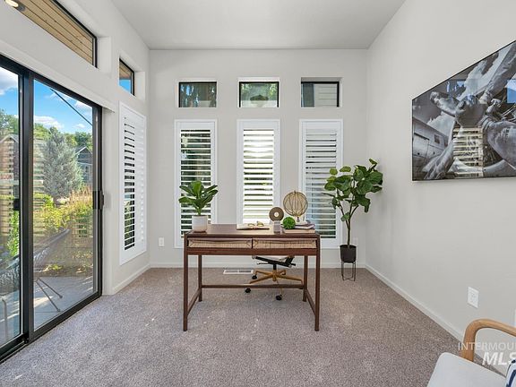 Fantastic North End location, just off Hill Road, on a rarely-traveled street! Just moments from Hyde Park, Crane Creek Country Club, and part of the Boise School district. This home offers an incredible lifestyle. Rarely available, this beautiful design with modern finishes mixed with warm wood tone floors is beautiful. It offers fresh neutral paint and grey stone firer place. The kitchen features abundant cabinetry, stainless steel appliances and large walk-in pantry. Private primary & luxurious en-suite bath is attached to an over-sized walk-in closet which is attached to laundry room. An additional office and guest bath finishes the main floor. Upstairs hosts a small landing and 2 bedrooms and full tiled bathroom. Come enjoy the cozy patio a lovely rose bushes. All blinds downstairs are custom wood plantation style, all new LPV flooring and new carpet though-out the home. Upstairs has its own mini split a/c systems in each bedroom. Very efficient!! Come see your new home!! BOM no fault of seller