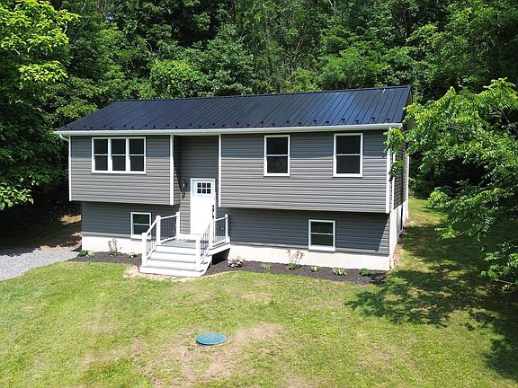 **Highest and best offer requested July 10 7pm** Over Panther Creek and through the woods, to a beautifully remodeled home we go…. 4 bedroom bi-level on 2 acres in Blue Mountain School District. This home can hardly be seen from the road but once you pull in the driveway you will love the curb appeal as everything is new! New black metal roof with warranty, new “charcoal smoke” siding, contrasted by new white gutters, downspouts, flashing, windows and doors. 5x7 front “clamshell” composite deck with fresh perennial landscaping will greet you but the real showstopper is inside with the 1.5 story high ceiling and the custom fabricated metal railing with a whimsical chandelier. Gorgeous new hickory engineered hardwood floors flow throughout most of the home. The open-concept kitchen, living and dining room are great for entertaining. The kitchen has all-wood construction white shaker soft-close cabinets with quartzite countertops, stainless steel appliances, 5 foot island with seating, and a custom backsplash. The sliding door frames the 12x14 rear composite deck with waterfall stairs. Down the hall features a linen closet, main bathroom with tub and custom wall tile and waterproof luxury vinyl tile, and two spacious bedrooms. Downstairs is another living area with outside access, utility room with half bath and laundry, under-stairs storage, and two more nicely-sized bedrooms. Oil burner is approximately two years old and septic was recently inspected and serviced. Approximately half of the lot is cleared and the remaining is wooded behind the home; a creek runs through the southern lot creating a private and serene setting. Two car detached garage and long driveway for plenty of parking. Location offers short commute to neighboring towns of Pine Grove, Cressona, Minersville, Pottsville and Schuylkill Haven. Don’t let this one slip away, schedule your showing today! Check out our 3D tour as well!