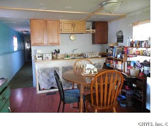 Single wide home in park 2 bedroom home with open floor plan. Wood stove for additional heat source. Eat in kitchen, living room. Covered patio, shed and yard.