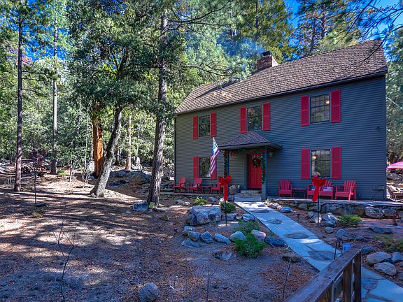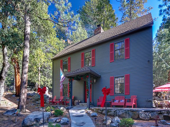 Patriot Place, A Colonial Salt Box style home oozing with charm & character, right out of a Norman Rockwell painting. Arrive in style by crossing your private 50 ft bridge opening to a large 2-car garage featuring a loft office, music/art studio space. One can''t deny the quality of construction & authenticity featured in this extraordinary home from the moment you arrive. Important details like Clapboard siding, Shutters, Double hung sash wood windows, colonial period Bullseye glass in the front & rear doors, wood plank ceilings with wood beams, & lovely heart pine wood plank flooring. The lower level features a large Living/Dining room with centering Rumsford style fireplace, Bright & cheery kitchen with adjacent morning room with wood burning fireplace, Guest suite #1, & ample storage. Upstairs features Guest suite #2, adjacent full bath, and a Master suite beyond compare! Great homes in this category with quality construction seldom exist in Idyllwild. Now is your chance!