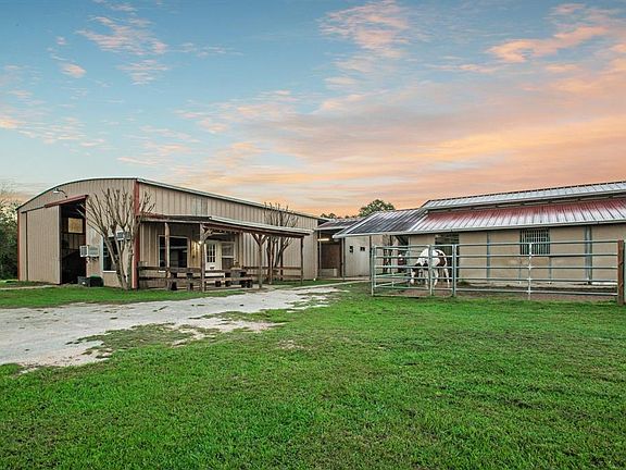 A premier equestrian estate sitting on 12.88 acres of sprawling green pastures and situated approximately 10 miles from The Woodlands. This incredible property features 27 horse stalls, a barn with 2 kitchens and 4 offices, 3 bathrooms, 1 covered and 1 uncovered arena for dressage, 1 round pen, and numerous paddocks. Tractor is included. Also located on the property is a stunning 3-bedroom, 3-bathroom home, which was renovated in the last year, with an open floor plan, 2 covered patios, custom finishes, recently installed double pane windows, quartz countertops, sliding glass doors in every room for optimum views, a game room, and gourmet kitchen with an oversized island and premium stainless-steel appliances. The private master suite features an oversized walk-in closet, separate vanities, and shower. This property is the perfect place for any equine enthusiast.