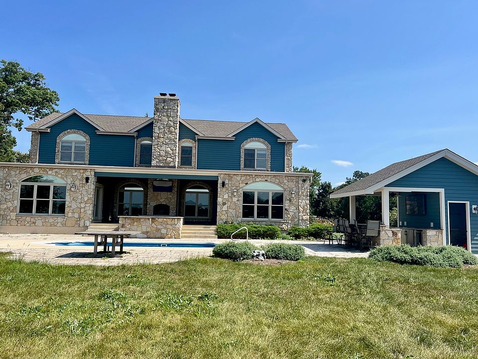 Welcome to your dream waterfront retreat on Lake Marie and the Chain-a perfect blend of luxury and comfort. This stunning smart home boasts 5 spacious bedrooms and 5 elegantly designed bathrooms, ensuring ample space and privacy for everyone. The heart of the home is the chef's kitchen, a culinary masterpiece featuring quartz countertops and top-of-the-line appliances that make cooking a pleasure. The main level showcases beautiful hardwood floors, adding warmth and sophistication to the open-concept living areas. Dining room features a built in table to fit large gatherings. Primary bedroom on the main floor features a spacious custom bathroom and walk-in closet. Also on the main floor across the house is a private office/Den area. Upstairs features 3 large bedrooms with 2 bathrooms and tons of storage space. In the basement of this magnificent waterfront home is an entertainer's paradise. It features a large, stylish bar with a distinctive tin ceiling, adding a touch of elegance and character. The epoxy flooring not only enhances the aesthetic with a sleek, modern finish but also offers durability and easy maintenance. This level also includes a fifth bedroom and a full bathroom, providing extra space and convenience for guests or family members. Whether you're hosting a lively gathering or enjoying a quiet night in, the basement is designed to cater to all your entertainment and comfort needs. Step outside to your private oasis where the in-ground pool beckons for relaxation and enjoyment. The outdoor space is complete with a cabana/bar, hot tub, and a cozy fireplace, ideal for both lively gatherings and tranquil evenings. With an 2-car garage, along with a 60x30 detached heated garage with 10' doors you'll have plenty of space for vehicles and recreational toys. Whether you're hosting a summer soiree by the lake or enjoying quiet moments on the water, this home offers the ultimate waterfront lifestyle with unmatched luxury and style.