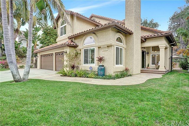 Imagine yourself living on a prime lot in Moulton Ranch. The home offers you a tranquil setting in which to relax and entertain. The secluded grounds offers a Built-in BBQ, Orange and Lemon trees, a mini-sports court with Basketball Hoop, garden areas, drip irrigation, view patio, and more. The well thought-out yard has lighting distributed amongst the trees to create a dramatic night effect. You'll enter the home through a Double Door entry and take in the dramatic Stairway. Vaulted ceilings and large 7+ inch baseboards add to spacious and dramatic feeling of the home. The Kitchen has been thoughtfully remodeled with upgraded Stainless Steel appliances, gas cooktop with hood, and a custom granite counter designed with living in mind. Three fireplaces add to the beauty of the home, including the Family and Living Rooms and a dual-sided fireplace in the Master Suite. The Master appeals to your desire to have your own space with its vaulted ceilings, spacious retreat/office, two Walk-in Closets, and remodeled Master Bathroom, complete with dual sinks and separate Tub and expanded Shower. There are four total Bedrooms with one conveniently located on the main floor, perfect as a Guest Room or Office. The Home is enhanced with new windows and LED lighting. Enjoy the new carpet. Close to local beaches, shopping, restaurants, transportation and more! Low tax rate & HOA and No Mello Roos! Seller will entertain offers between $1,100,000 and $1,175,000