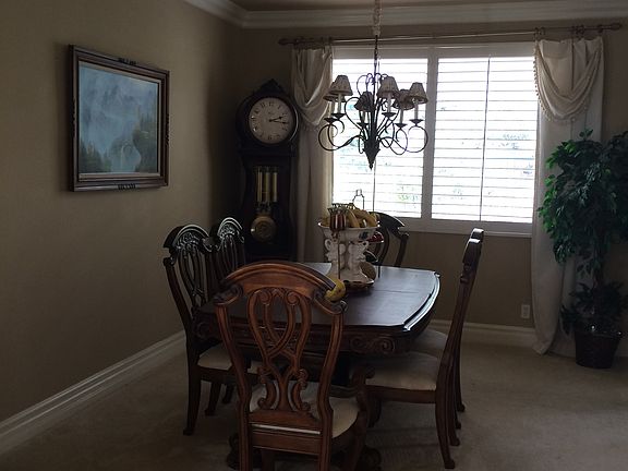 Beautiful 5 bedroom family home on quiet street in Stevenson Ranch! This fantastic home features a downstairs bedroom/den/office with it's own bathroom and shower, perfect for guests or in-laws! Soaring ceilings upon entry into the home, formal living and dining rooms. Gourmet kitchen with granite counters, white cabinetry, newer stainless steel appliances! The backyard features a covered patio with ceiling fans, and a built-in gas BBQ. Spacious 3 car garage with high quality storage enclosed storage cabinets along two walls. Four bedrooms upstairs including an elegant master bedroom with fireplace and a sitting area! Custom wood shutters throughout home, along with new paint throughout. Outdoor storage shed with tiled roof and double doors adds 168 additional square feet of storage. Outdoor patio with 4 tier fountain offers outdoor dining on front porch.