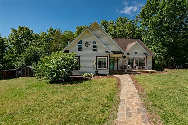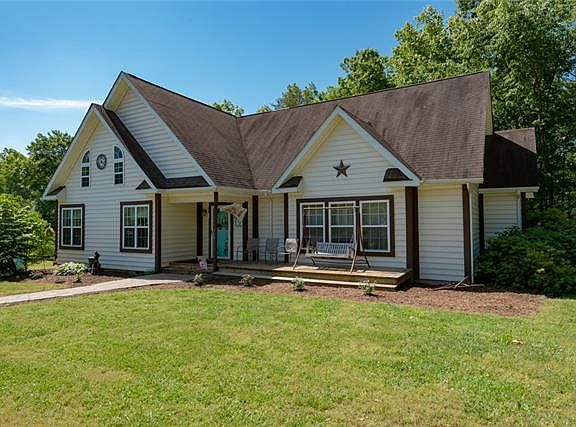 COUNTRY SETTING for this cozy 1.5 STORY home situated on 1.55 acres. Stone Hearth, Wood burning Fireplace in the Open 2 story LR. Pergo style flooring in most of the Main level.Kitchen and Bath have vinyl tile flooring and carpets in the Master and Upstairs. One Owner. Open Floor Plan is very inviting . Kitchen offers Tile Backsplash, Island, Pantry, Bayed Breakfast Area and access to the side deck through a sliding door. Smooth ceilings. Laundry Room offers entry to the rear deck and fenced in backyard. Master BR & Bath w/Garden Tub with Tile Surround, Sep. Shower, Dbl Vanities, Walk in Closet and Sep Water Closet. 2nd Bedroom and Full Hall Bath located on the Main level as well. Upstairs you'll find a Spacious Loft which would make a great Family Room. A 3rd Bedroom is the current setup. There is also a finished Bonus Room used as an 4th Bedroom and a Large Floored Attic Room that is 16'10" x 13'2"..great for further expansion. Outbuilding/Lean2 remains. Above Ground Pool stays.