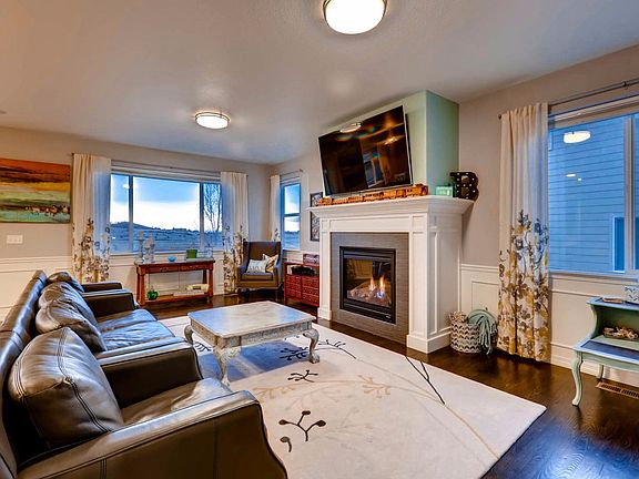 Upgraded Home w/ 3-car garage and walkout basement. Hardwood Floors throughout the main level. Gourmet Kitchen with slab granite counter tops, five-piece stainless steel upgraded appliances-gas cook top and upgraded cabinetry. Adjoined to the kitchen is a computer room (command center) with slab granite, cabinetry and pass through to the kitchen. The open floor plan is perfect for entertaining. The oversized living room features wainscoting, gas fireplace, and surround sound. French doors lead to the office/flex space. Upstairs is the Master Suite with vaulted ceiling, en-suite bath-split vanity, and tiled floors and shower surround. Plenty of space, with three large secondary bedrooms. Enjoy the deck or the oversized patio below w/ fire pit and poured bench. Special features to enjoy are the views of the bluffs, neighborhood pool, fitness facility, community park/playground, nearby Rhyolite Park.