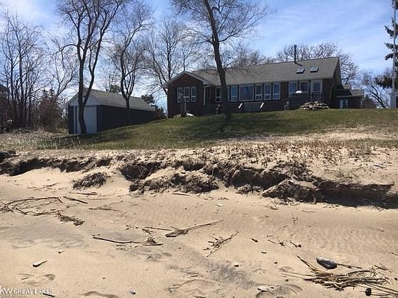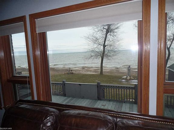 Custom built 2500 ft. of quality living. 4 bedroom 2-1/2 bath home, with 75 feet on beautiful Lake Huron with a low bluff and sandy beach, .96 acre of land, and two large Garages. Conveniently located on M-25 in Forester, 33 miles north of Port Huron. Granite kitchen adjacent to dining area with gas fireplace and cathedral ceiling with great views. The Great Room has 7 windows overlooking the beach and features a cathedral ceiling and glass French doors. Ceramic Tile floors thru-out first floor, except for the bedrooms and Great Room. Generous master bedroom is adjacent to large bathroom with stand up shower and make up area. First floor laundry is very spacious. Lower level has large family room with built in bar for entertaining and two adjacent bedrooms. Stairway to yard. Ideal mother-in-law suite, or home from college. Lower level has a huge storage.