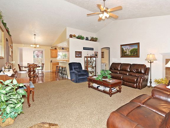 5 bedrooms + bonus room. Features include split bedroom plan, vaulted ceilings, warm colors, new carpet on the main level, new furnace, blinds, fans, gas fireplace with mantle & brushed nickel fixtures. Master suite has a walk out to the patio, walk in closet, 2 sinks, separate tub and shower. Kitchen has breakfast bar, tile back, pantry and new flooring. Laundry has cabinets, hanging rack and fold table. Walking distance to Seasons Park. Easy Seasons Park. Close to golfing, restaurants, shopping and more.
