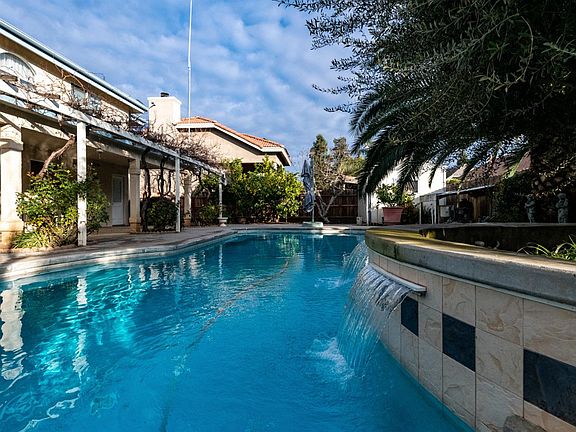 A front yard with a story. Tiny palm trees were carefully tucked into the sellers baggage as they traveled to their new home in Clovis from their homeland of Sicily. These trees have been growing beautifully for over 20 + years and now are the focal point of the front yard. Stately palms, the lovely backyard landscaping and the Mediterranean blue pool make this your oasis in the valley. Open concept with formal dining room, spacious bedrooms, and lots of storage. Clovis school district, this home is just waiting for you to turn the key and make it yours.