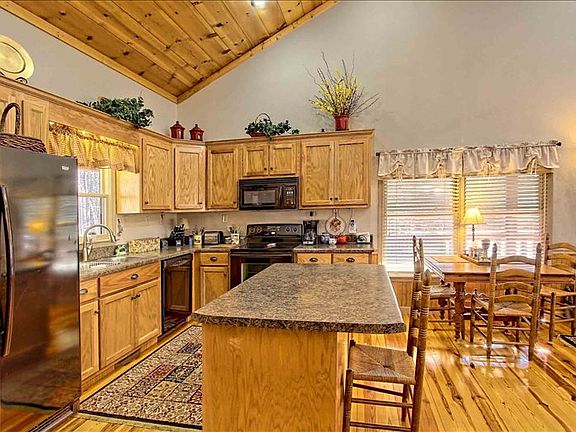 WOW mountain cabin close to everything in the heart of Young Harris. Immaculate move in ready wooded lot with aprox 1800 sqft under air. Gorgeous river rock stone fireplace in the Greatroom. 4 sided covered wrap around porches. Disabled friendly ramp into the main level with open floor plan. Island Kitchen w/natural wood cabinets. Wood floors and ceilings in Great room and MBR, Full finished lower level walk out BSMT with 2nd BR, lrg walk in closet, multipurpose room and full bath and Laundry RM. Paved circular driveway with double carport. 8x12 storage shed w/ramp, this is the whole package everyone is looking for! Lovingly maintained, New HVAC in 2014 & driveway sealed 12/2016 Move in condition and ready for you to enjoy !