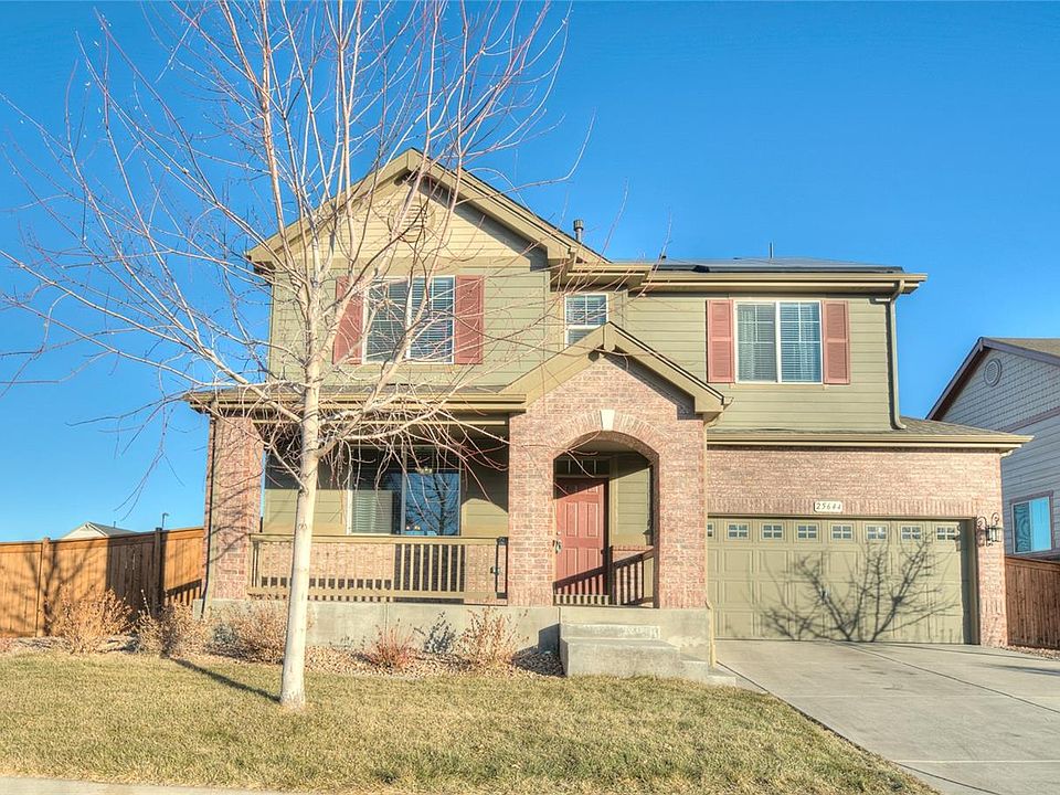 Wonderful DR Horton home with an open main floor area. Cozy fireplace in living room, ample dining space off of kitchen, warm laminate floors through out the main floor. Kitchen has double ovens, separate cook top, pantry and a large island. Upstairs the seller's have had brand new carpet installed and the rooms are laid out nicely with the master having its own private retreat with sitting/TV area. Five piece bath. Secondary rooms share a bathroom. Laundry is conveniently located upstairs. 3 car garage (2 car part is 18'x23' and the 1 car tandem is 12x15'). Central VAC. Looking for a nice sized back yard & corner lot? This is your house! Lovely covered patio off of the dining room. Facing a greenbelt/park area, this home gives you plenty of outdoor space. Great community with lots of parks and a community pool. Vista peak within a short distance. Easy access to 470. This house shines - you will love it. 20 year lease agreement with Solar City/Tesla.