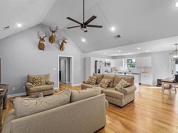 Gorgeous New Construction 3 bedroom, 2 bath brick home on 56.5 +/- acres. One level open floor plan!!! Large Kitchen with island, eat in area, tile backsplash, custom cabinets & stainless appliances, solid surface countertops, hardwood floors, tankless water heater, seperate laundry room. Master bath with double vanity and huge walk in tile shower and oversize walk in closet. Hurry Don't let this one slip away!