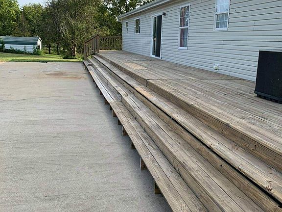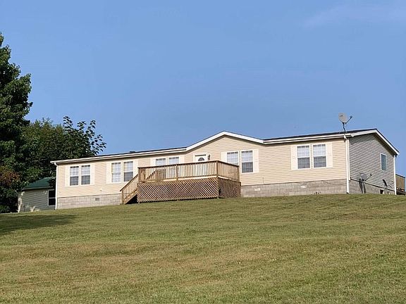 Newly remodeled home with deck an great view of the Southern Illinois Rolling Hills This manufactured home on 8 acres offers 4 bedrooms and 2 baths with a family room and living room also a 2 car garage and 2 car carport. The property is about 1/2 open and half in woods with a creek and a small pond 10x21 front rear of home is deck with steps all along length onto concrete patio 65x20. Great view of countryside Lots of kitchen cabinets with appliance garage. Walk in pantry Bathrooms have double sinks Master bath has a soak tub plus shower. Large garage 38x25 plus covered 38x22 carport. All flooring is vinyl that looks like hardwood. If you need elbow room this home has it