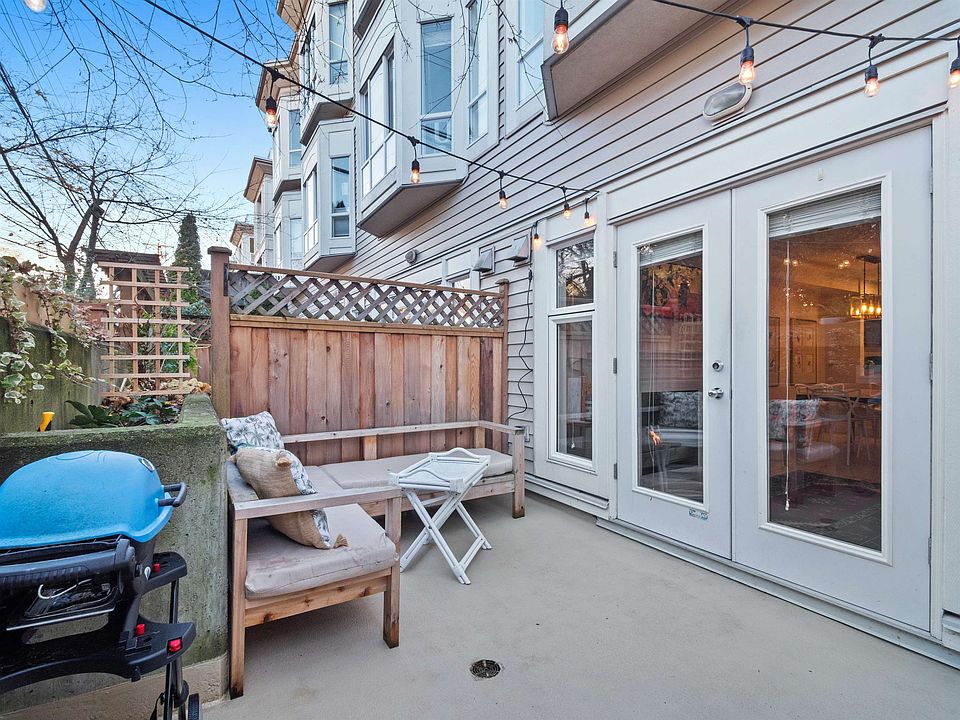 Welcome to your beautifully updated 2 bed 2 bath townhome with an amazing private walk out patio in one of the best locations in Kitsilano! This unbelievably quiet & private home features tastefully updated kitchen with quartz counters, tile backsplash, brass fixtures & stainless steel appliances. Open floor plan with engineered hardwood floors, cozy fireplace, spacious living/dining area with beautiful French doors opening onto the large private patio and direct access to all Kits has to offer. Primary bedroom with en suite and soaker tub features bay window & reading nook overlooking tree tops complete . Steps to shopping, cafes, transit, schools, library, Kitsilano Community Centre and Kits beach/pool just a short stroll away! Pets & Rentals allowed. 1 PKG/1 Storage.