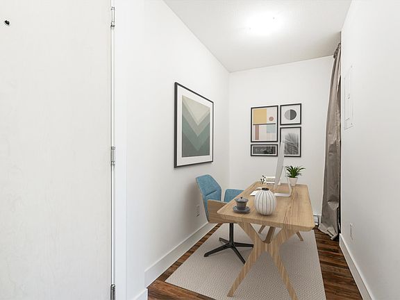 This top floor 1 bedroom + den condo at Abacus Uptown is perfect for the first time buyer or savvy investor. Walking into the unit you immediately notice the versatile den space that is large enough to accommodate a home office or could be turned into an amazing closet or storage space. The room then opens up to the main living space which includes 11 foot ceilings in the living room. The kitchen features stainless steel appliances, quartz counters and an island for the home chef. The primary bedroom easily fits a king bed and has a big bright window overlooking the courtyard below. Centrally located near the bustling downtown business district this complex is pet and rental friendly.